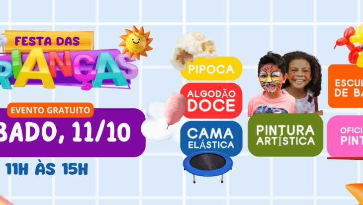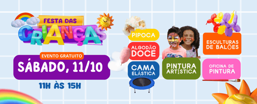 👉 No dia 11 de outubro, das 11h às 15h, traga os pequenos para curtir um dia de muita diversão com: